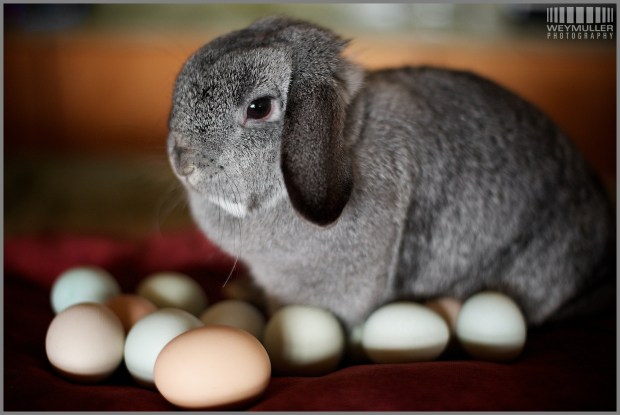 Or, I could answer the question…neither came first!  I say it was the Bunny that came first. That’s right the sweet little guy who comes around each Spring, filling baskets with rainbow colored eggs. No chicken lays rainbow eggs so it’s got to be the Bunny. Ok, a few lay blue, green, brown, and white eggs but I’ve seen none with swirls…and how about the fancy glittery ones?
